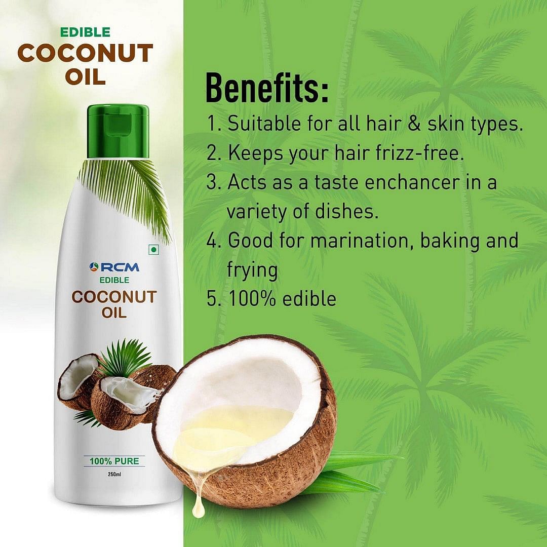 Edible Coconut Oil is 100% pure coconut oil made without adding any preservatives or chemical. Extracted and filtered to ensure purity, which helps in conditioning your hair and skin. It also adds luster, shine and softness to the hair.